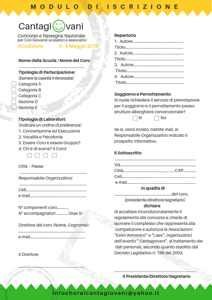 L’edizione dell’anno 2019 si svolgerà nei giorni 3-4 maggio a Salerno 2019 ed è aperta a tutti i cori giovanili scolastici e associativi attivi sul territorio nazionale.